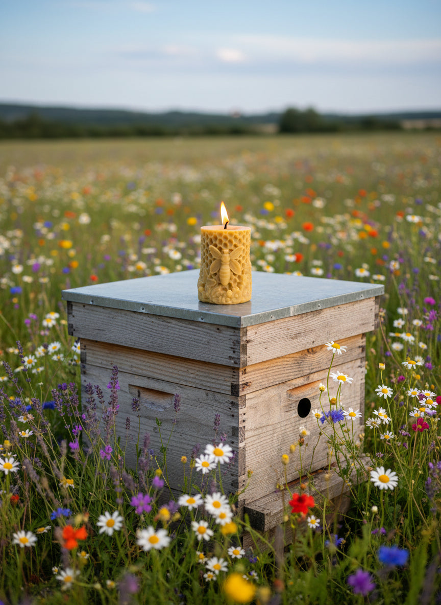 The Summers Honeycomb Bee (Signature Collection) β 100% Natural Beeswax Candle | Handcrafted from the Hive